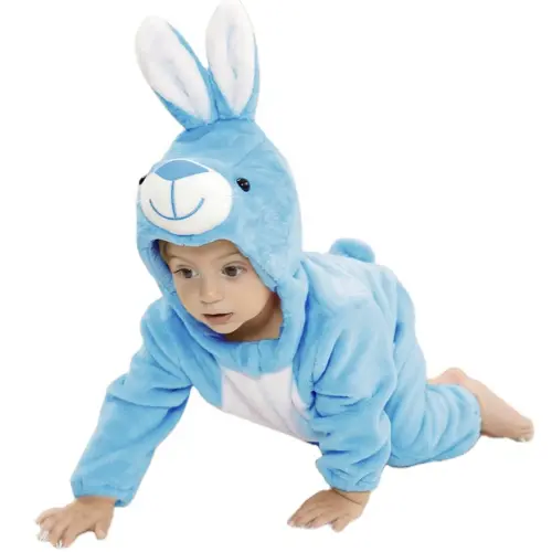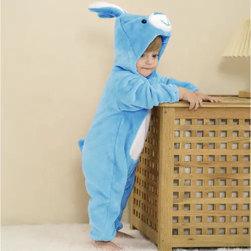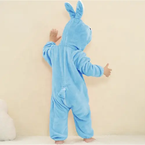 Perfecto para noches frescas, este pijama de conejo azul envuelve a tu bebé en suavidad y abrigo. Ideal para dormir cómodo y con un estilo tierno y clásico.