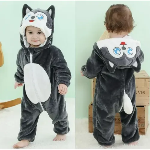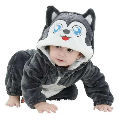 Con un diseño adorable y un tacto suave, este pijama de lobo es perfecto para bebés aventureros. Ideal para dormir cómodos y soñar bajo la luna.
